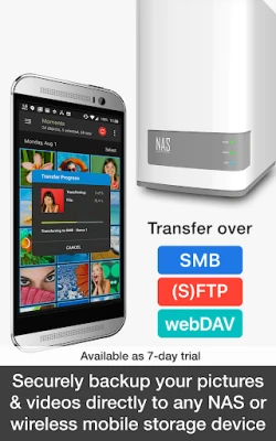 • Securely backup photos & videos to your NAS, remote server or personal cloud over SMB, (S)FTP or WebDav