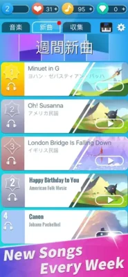 1. New piano songs are added every week.