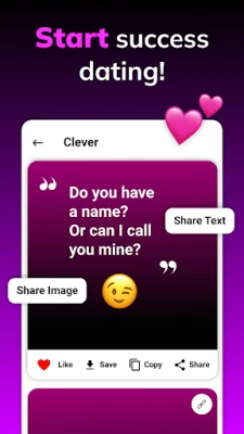 Our app isn't just about providing you with content; it's about creating experiences. With easy navigation and features like the ability to mark your favorite pick up lines or share love text messages directly, you're always just a few taps away from making someone's day.