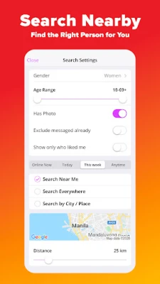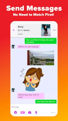 • Browse through 100,000+ active photo profiles • Search for profiles in Manila, Cebu, and all over the Philippines • Double tap to send interest to a member • Send messages and photos for free (free limit 1 message per 10 minutes)