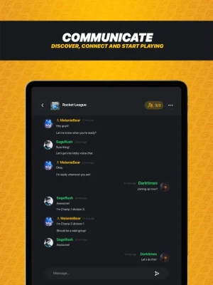 Once you've found your perfect LFG, kick off your team and go for the win. And while you're waiting for the match to start, PlayerFinder offers in-app chat with your squad, so you can stay connected and strategize together. You can also easily see your squad's gaming and social links so that you can connect with them in-game and out of the app.