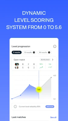 With Playtomic, you can quickly and easily monitor your progress. While advanced stats are available with our Premium subscription, you can still see a few basic stats like matches played, wins and losses, and final scores with a free account. If you're eager to take your experience up a notch, you can upgrade to Premium and unlock all the exclusive features.