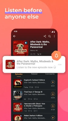 - Follow your favourite podcasts: Choose whether to subscribe, get notifications or download them automatically.