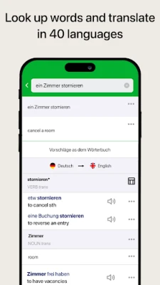 Listen to the correct pronunciation of your dictionary translation. Use the zoom function to magnify the translation and show it to someone else on your device. Especially handy on trips!