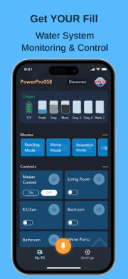 The Power Pro App provides RV owners with a robust mobile solution for RV monitoring and control, allowing you to monitor your RVs battery and holding tanks, while also having the ability to fully control the following features when installed in your RV: