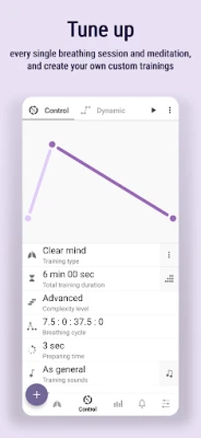 * Regularly updated database of more than 50 training patterns, such as: 4-7-8 breathing, Kapalbhati, Anulom Vilom, Nadi Shodhana, Tummo / Inner fire, Udgeeth, etc.