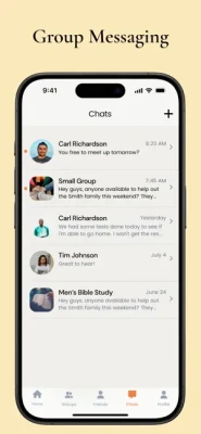 *Messaging: Chat for each of your groups or direct message others.
