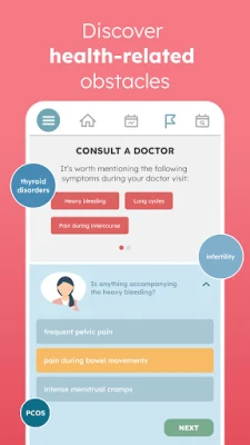 ✔️ Smart menstrual calendar with irregularity alerts