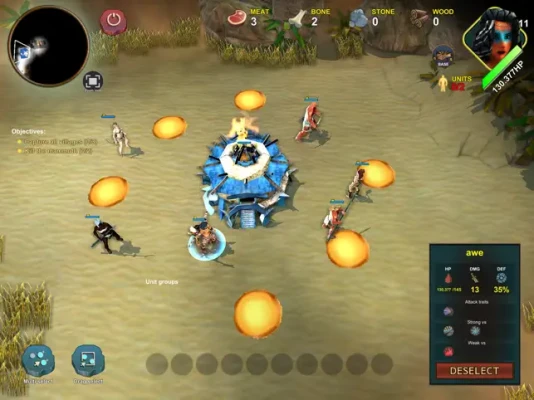The game also provides full control over camera rotation, zoom and pan and includes multiple unit selection using both tap or drag gestures. Use the group selection feature to create groups of warrior units, ensuring you deliver your best strategy at all times.
