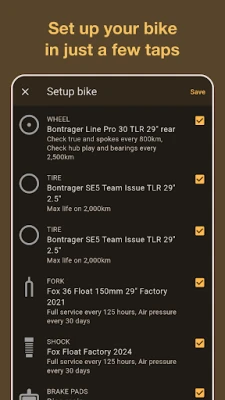 ✔️ Sync all your bikes and rides seamlessly from your Strava account to start monitoring your bike and parts' status.
