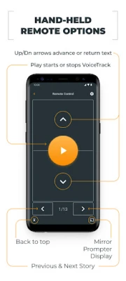 The Remote Control allows you to mirror the screen of your prompter display so that the content of the teleprompter display can be viewed and re-positioned from a distance.