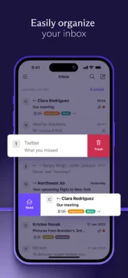 • Keep your inbox tidy and clean with folders, labels and simple swipe-gestures