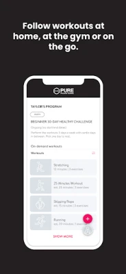 - Message your PURE Personal Trainer in real-time via the app and stay connected with your online communities to connect with like-minded individuals, share experiences and stay motivated!