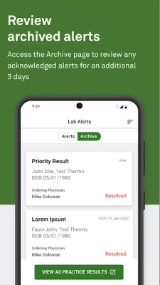 Quest Lab Alert for Physicians is a companion to the Quanum® Lab Services Manager application, both providing access to the same Priority and STAT results notifications. When a notification is received, you can click the notification to immediately view and acknowledge the results within the app. Results that are acknowledged via Quest Lab Alert for Physicians display the same acknowledgement message that appears when they are acknowledged within the Quanum Lab Services Manager application.