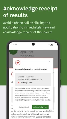 Quest Diagnostics will not call your practice regarding STAT or Priority results that have been acknowledged electronically via Quest Lab Alert for Physicians, as long as the acknowledgement is received in advance of the deadline.