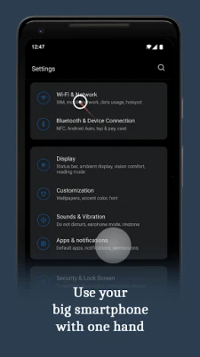 Makes it easier to use large smartphones with one hand by introducing a computer like cursor controlled with one finger by swiping from edge of the screen.