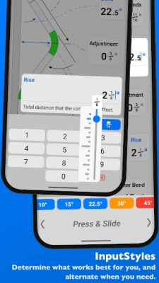 Offering the most intuitive method to input data. Whether you want to get straight to the point, or comb through the possibilities of a bend. You can switch back and forth between different input styles such as a number pad, or a slider bar (Press & Slide). Both having their unique advantages. QuickBend allows you, the user to toggle between two different types of measurements; inches and centimeters.