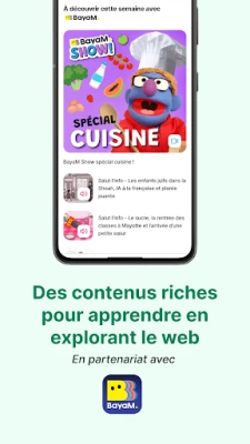 • Ludique et éducatif : Qwant Junior propose gratuitement une sélection de contenus ludo-éducatifs provenant de Bayam, l’application de Bayard Jeunesse et Milan qui nourrit la curiosité des enfants. Retrouvez chaque semaine, sur la page d’accueil du moteur de recherche Qwant Junior, une sélection de documentaires, jeux, quizz, histoires et activités en lien avec les temps forts de l’année, ainsi que les univers des personnages et des magazines Bayard Jeunesse et Milan.
