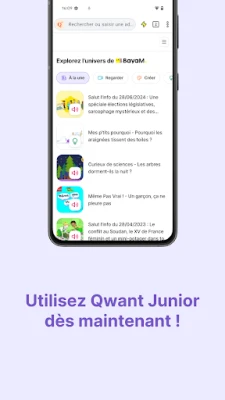 Accès sur tous les supports : Disponible sur iOS et Android, l'application Qwant Junior permet aux enfants de poursuivre leur exploration du web en toute sécurité depuis un smartphone ou une tablette.