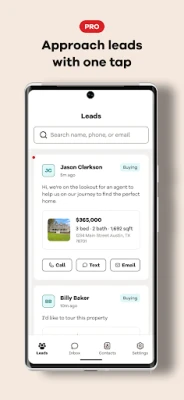 Experience streamlined versions of the functionality you already expect, so you can: - Catch leads fast with instant push notifications - See all contact info entered by each lead, like name, location, and property details. - Call, text or email each of your leads straight from the app