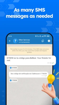 The number is yours for 20 minutes. Use and receive as many SMS as you need for your services.
