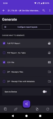 - PDF: Combine all your receipts into a single PDF with optional summary table, highly customizable