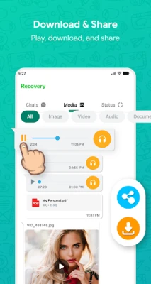 You can also save your friend's statuses with Deleted Message Recovery App. It’s your one-stop solution to recover deleted messages and save video statuses and photos. Simply view the desired status, then download and save it to your gallery.