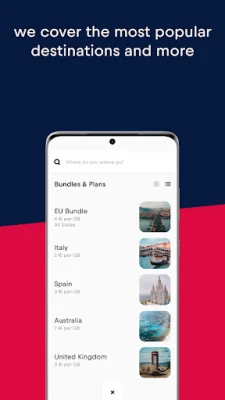 You can get data for more than 60 countries, including almost every country in Europe, EU bundles and the most popular destinations in North and South America, Australia, and Asia.