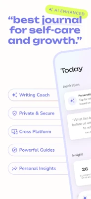 Photo Support, Quick Templates, Custom Tags, Gentle Notifications, Private Entries, Fast Search, AI Insights, Secure Sync, CSV/JSON Imports, Easy Exports, and more!