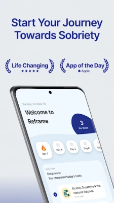Manage and change your drinking habits so that you can drink less and live more, thanks to the #1 alcohol reduction app. Here at Reframe, we do science, not stigma. Is your goal to take control of your habits, cut back on drinking, or go alcohol-free? Reframe is your go-to sobriety tool and drinking coach. With a neuroscience-based approach, daily tasks, and live meetings, you’ll stay accountable and track your progress. Experience the full power of our sobriety program- start with a 7-day trial free sobriety app.