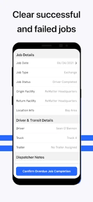 Dispatch on the go with the ReMatter Dispatcher mobile app. Create jobs, view job statuses, and update jobs all from the mobile app. Filter down to see an individual's Driver’s job schedule and clear their completed jobs directly from the app.