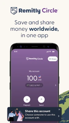 Remitly Circle’s global account allows you to store value and share access permissions globally. It is not a bank account. Remitly Circle is only available in limited markets and product features may vary by available market.
