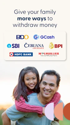 * Give family more financial choices: Let your family choose the time, amount, and way to withdraw in local currency. From banks and digital wallets to cash pickup locations, your loved ones can enjoy multiple ways to withdraw money, tailored to their region. Remitly Circle’s partners in the Philippines include GCash, Cebuana Lhuillier, BDO, Palawan Shop, and more. In India, we work with banks like BPI, HDFC, and others.