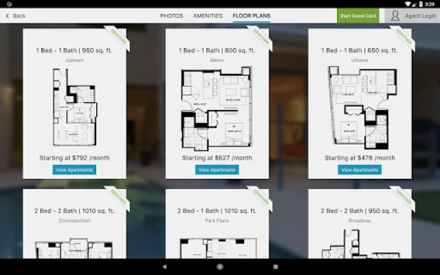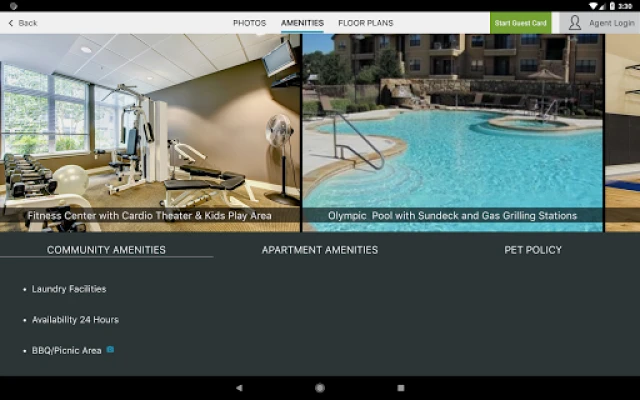 Features include: property photos, amenities, floor plans and availability, custom eBrochures, prospect-facing guest cards, driver’s license scanning, package scanning, online applications and leasing, resident screening, offline support, amenity reservations and more.