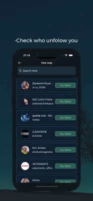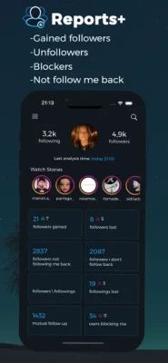 # Account Analytics # See New Followers (Gained followers) # See New UnFollowers (Lost followers) # See Followers you don’t Follow Back # See Users you Follow that Don’t Follow You # Watch stories