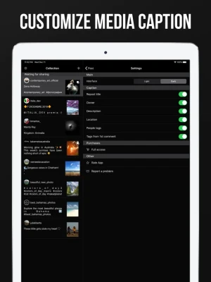 The app is a utility for sharing photos, videos to Instagram. Also, photo & video galleries are supported.