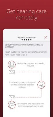 • Enjoy optimization anywhere with ReSound Assist: Request help with your hearing aid settings from your hearing care professional and receive new settings and software updates.