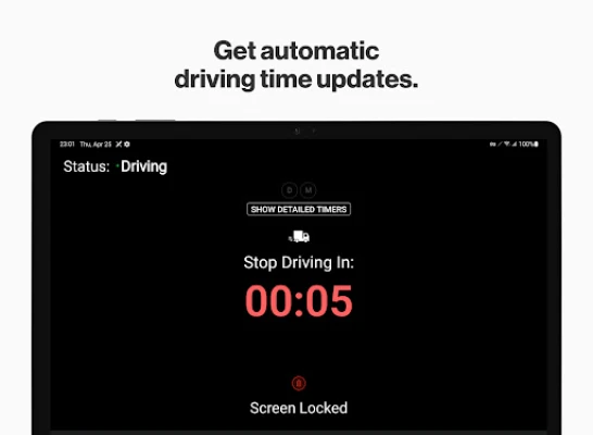 • Warning and alerts for approaching violations or break completions.