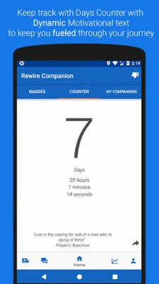 Rewire Companion is designed to help you break free from the modern addiction of watching porn. It offers tracking features and the ability to find an accountability partner, making it easier to stay committed to your goal of quitting.