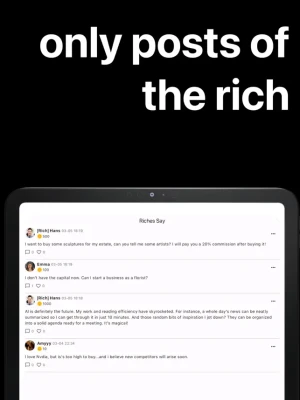 RichSay is an app designed specifically for the wealthy to post, where you gotta pay to play. This setup filters out a ton of meaningless noise because when folks are paying, they think twice, making the posts a whole lot juicier.