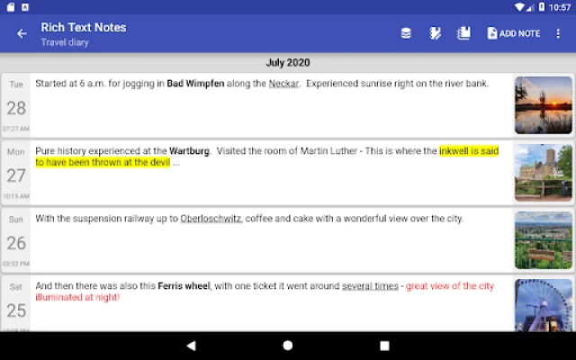 Rich Text Notes can be used as a simple notebook, but also as a diary, shopping list or todo list, for example. As a special feature, our app offers the option of creating your notes with formatting, not just plain text. Rich Text Edit also allows you to keep as many different notebooks as you want. With this app you can easily record and organize all your notes, activities, events, appointments, experiences, ideas, flashes of genius and little secrets throughout the day.