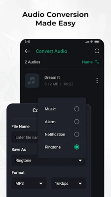 🔹 Easy Ringtone Creation: With Ringtone Maker, you can turn any of your favorite songs or audio files into a personalized ringtone within seconds. It's as simple as choosing a song, selecting the desired part, and saving it as your ringtone.