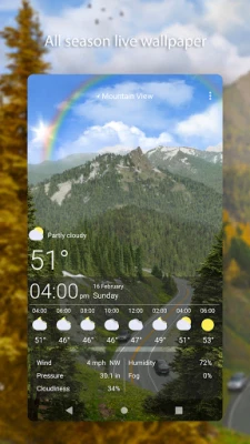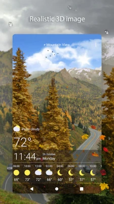 The movement of the sun, precipitation and the phase of the moon are realistic on-screen animations with beautifully crafted details. The picturesque landscape reflects the weather with amazing accuracy. Enjoy the sunrise, rainbow, birdsong and every sun glare!
