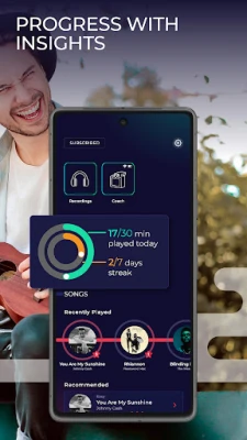 • Get instant feedback with your overall score, rhythm score, and chords score to know what you need to continue practicing