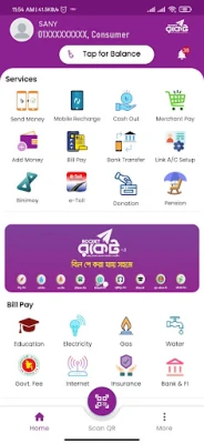 Dutch-Bangla Bank Mobile Banking Application can be used by anybody who has a mobile number of any Telco Operator and a android phone. This app is available in both Bangla and English languages. With this app, one can do the following-