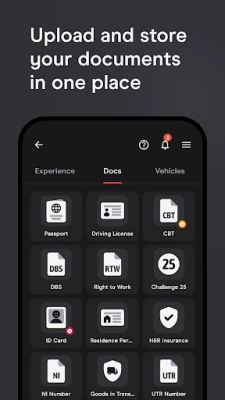 EASY APPLY ~ ALL YOUR DOCS IN ONE PLACE Upload and securely store your docs, qualifications and vehicles to show businesses your credentials and skills.