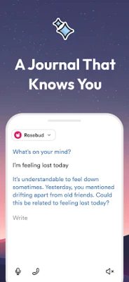 Rosebud is your personal AI-powered self care companion. Rosebud is a therapist-backed journal and habit tracker designed to improve your mental health. Rosebud is a diary that evolves with you, learning from your entries and providing personalized prompts, feedback, and insights tailored for your growth.