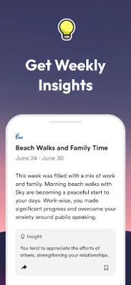 • Weekly Mental Health Insights: Track themes, progress, wins, emotional landscape, and more with comprehensive weekly analysis provided by AI