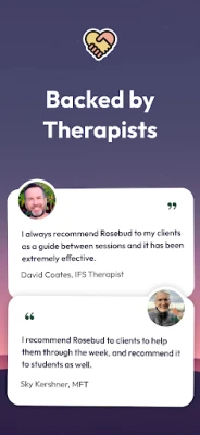 Navigating challenging emotions? Want to better manage stress, anxiety, or overthinking? Rosebud is designed to help you work through difficult emotions and thoughts. With just a few minutes of journaling, you'll reduce stress and gain clarity.
