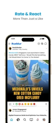 Rueblur aims to make social media fun again! Rate, react, share, and interact with users and content everywhere. Create exclusive Rueblur content and accounts to distribute fun videos, polls, captures, and content to your followers. Use Rueblur rank to see the most popular accounts and content in the world, and last but not least create Rueblur business accounts to connect and promote business and professional endeavors!